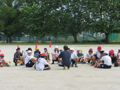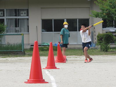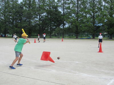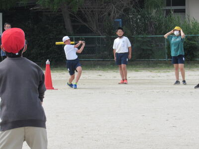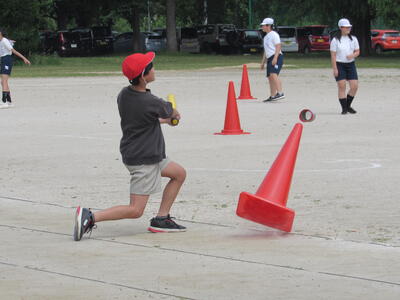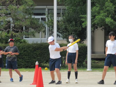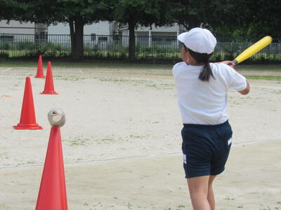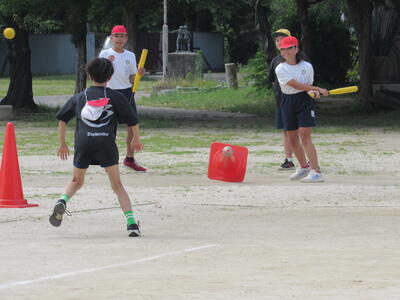 ◆6年生の体育は、ベースボール型ゲームである「ティーボール」を楽しんでいますよ。