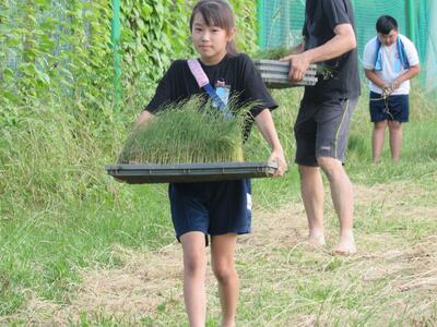 「田植えに比べたら、汚れてもへっちゃらです。」 「気をつけてよ。」