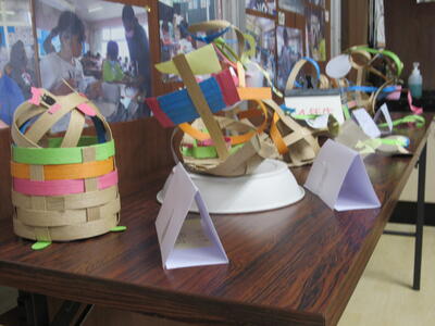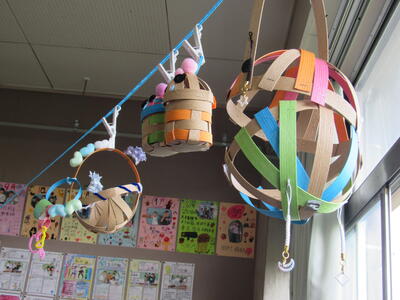 「作品つるーす」につり下げていくと、教室内も彩られていきます。