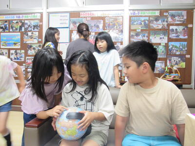 「日本がここにあったあ。」 こちらは、地球儀で世界の国々を探しています。