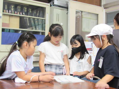 6年生は、卒業アルバムの研究に来て、30年前の卒業生を探しています。