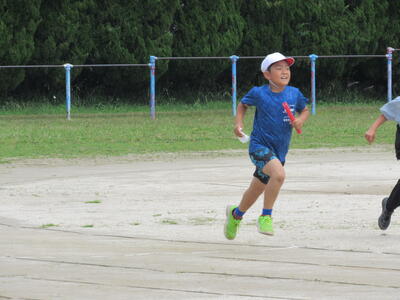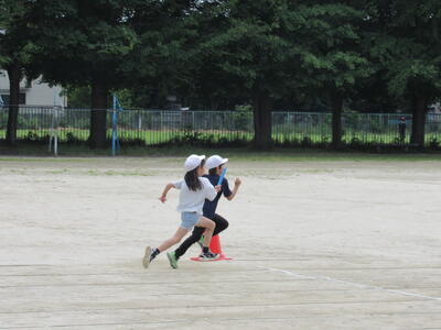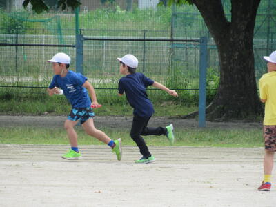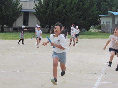 今朝は、5年生が体力向上を図るため、リレーを行っています。