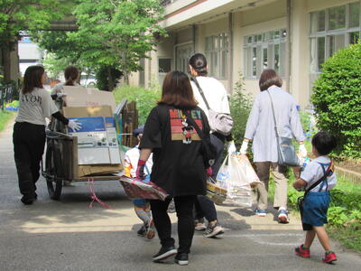 ◆今朝は、保護者の方々が資源回収作業をしてくださっています。