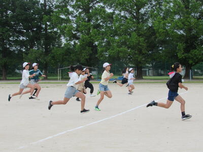 ◆今日から、5年生は、朝の「モーモータイム」に、体育の短距離走チャレンジを始めていますよ。