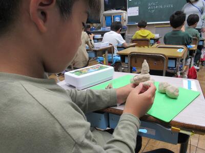 ◆1年生の図工「ねんどとなかよし」では、動物や楽器など、思いを巡らせて表現していますよ。
