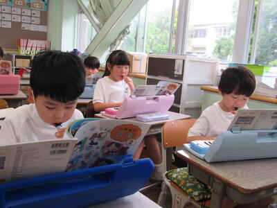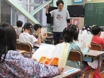 教科書を持って、姿勢も正して、音読をすることを楽しんでいますね。