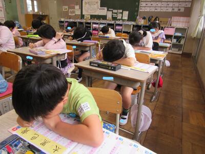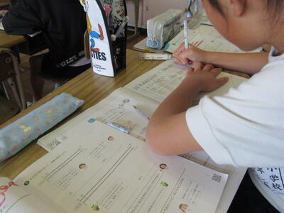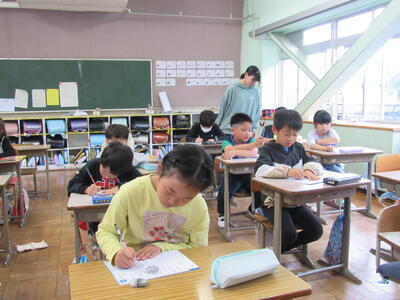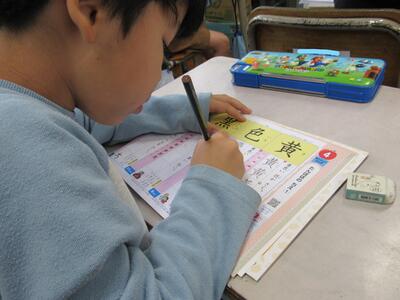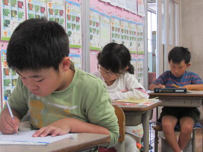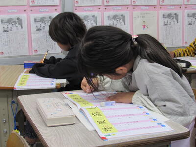 ◆2年生の教室は、漢字ドリルを使って、書き順をしっかりと学んでいますよ。