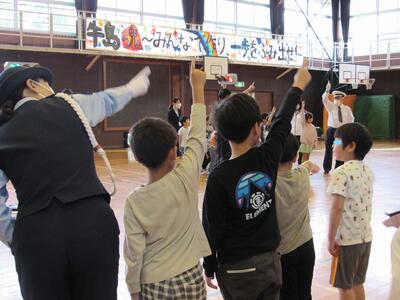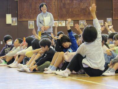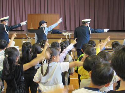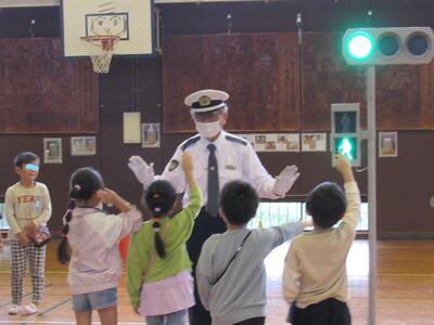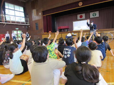 ◆2時間目の体育館では、1年生の交通安全教室が始まっています。