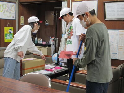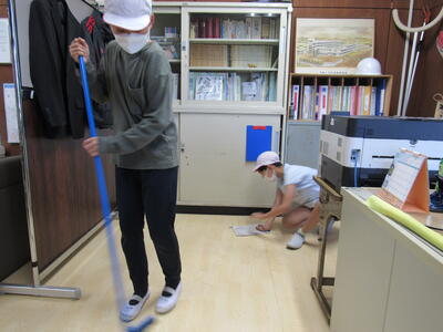 掃除を終えた6年生「校長室の中が変わっているなあ。」 「どうぞ入ってみてね。」