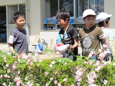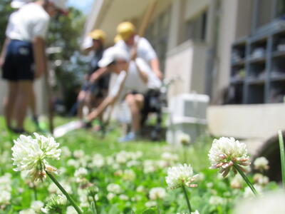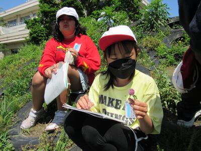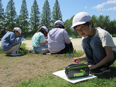◆3年生は、校庭で春の虫や花を観察しているよ。