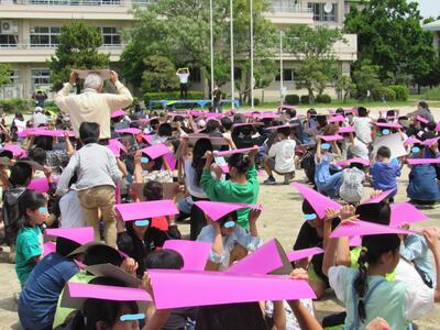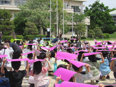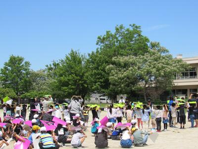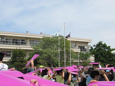 とても素敵な航空写真撮影の日になり、全校が笑顔です。