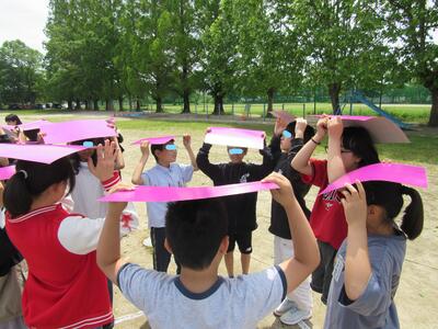 「2回目は、ペアや人数を変えてみよう」と投げかけら、私も3年生たちと楽しんでいます。