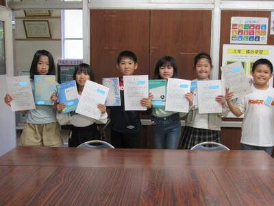 自主学習ノートの表彰には、2年生(4人)と3年生(2人)が来ていますよ。
