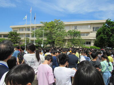 続いて、全校での集合写真を撮影しようと、このように集合してきています。