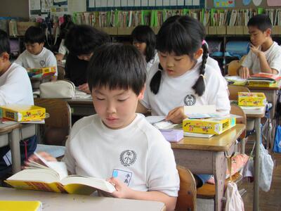 ◆5組も、国語辞典を使って、言葉の意味を調べていますよ。