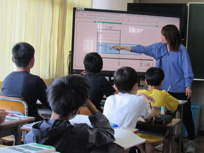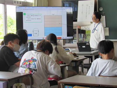 ◆5年生の教室も、2つのクラスが3つに分かれ、充実した算数の授業を展開してますよ。