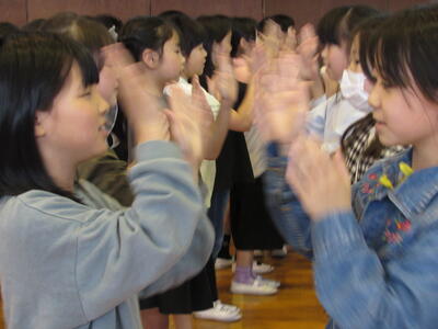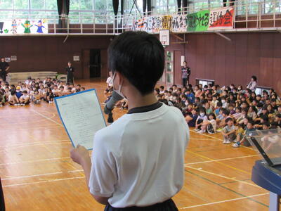 月に一度、全校で歌声を合わせます。