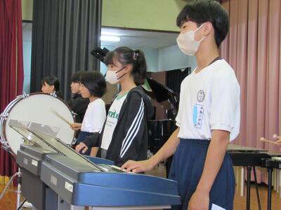初めて、大だいこ、小だいこなどの楽器を演奏し、鍵盤ハーモニカと合わせていますね。