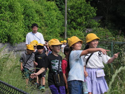 「倉松川の近くは、自然が多いね。」 「鳥や虫がいっぱいだ。」