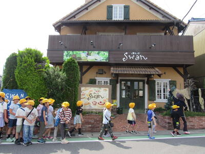 「あっ、スワンのお店の方だ!」 「牛島小のみなさん、こんにちは。」