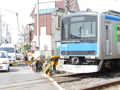 踏切にさしかかると、ちょうど春日部方面へ行く電車が・・・