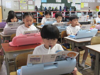 ◆こちらの1年生は、国語「あさの おひさま」の詩を音読していますよ。