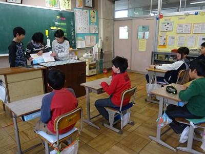 今日の読書タイムでは、図書委員のみなさんが、1年生と5・6組に入り、読み聞かせをしてくれました。心のこもった読み聞かせに、みんな耳を傾け聴き入っていました。