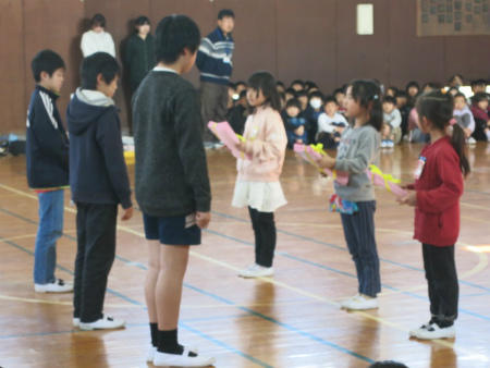 音楽集会 投稿日時 : 2019/02/25 牛島小 カテゴリ: 今年最後の音楽集会です。4年生の発表がありました。とてもきれいな歌声を発表してくれました。音楽集会の後は、1年生が6年生に6送会の招待状を渡しました。