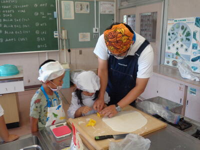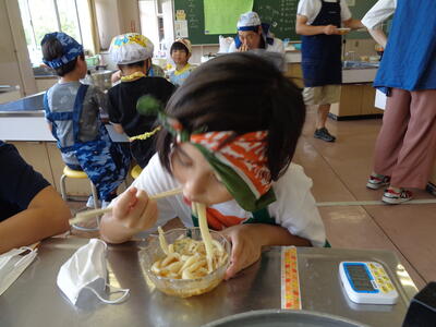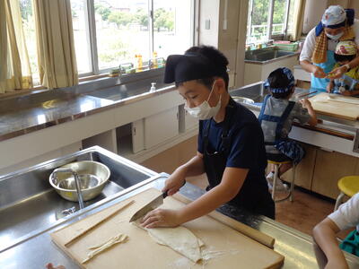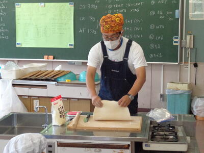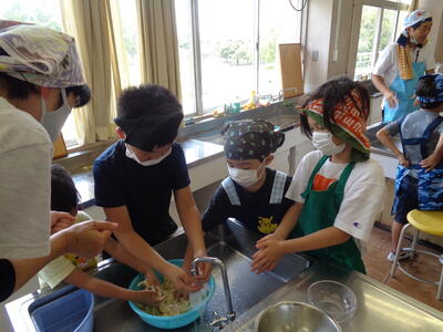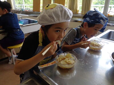 5・6組のみんなが朝から家庭科室で調理実習をしていました。