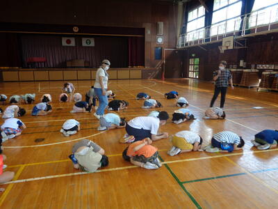 子供たちは、「変身の術」を使って、小石やスカイツリーに変身したり、「チャンバラごっこ」をしたりと数々の修行に励みました。暑い中、思いっきり体を動かしていました。みんな立派な忍者になれそうです。