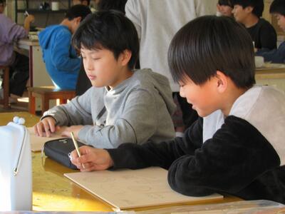 図工室では、5年生が芸術家になり、真剣に取り組んでいますね。