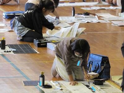 3年生は、書きぞめの専門家の野口様をお迎えし、たくさんのことを学んでいますよ。