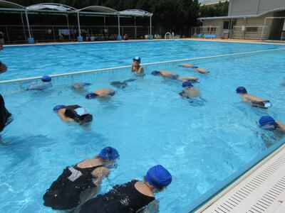 「流れるプール」を楽しんで、いよいよ「コース別」に分かれて練習を始めるようです。