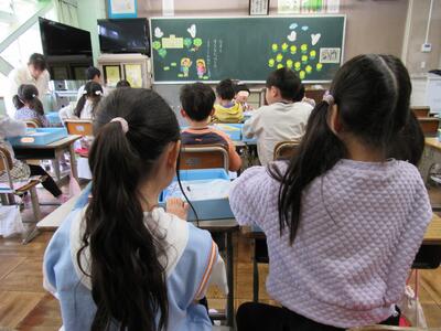 ◆4年生は、1学期の目標を考え、自己紹介カードを作成中しています。