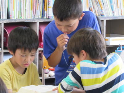 「校長先生、ぼくたちのたんけん隊に入りますか?」 「いいですねえ。」