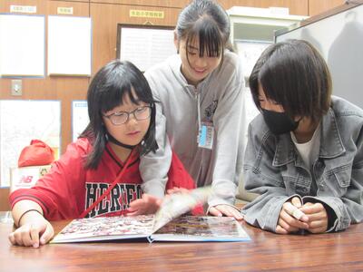 その横で、6年生が卒業アルバムを楽しそうに眺めていますよ。