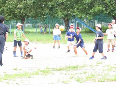 ドッチボールコートでは、3年生の笑顔がはじけています。