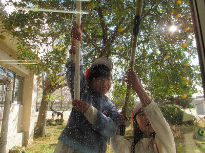 「これで、窓をきれいにできたよ。」 「ありがとうね。」