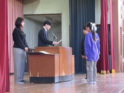 ステージ上の代表児童以外にも、体育館内のたくさんの子供たちに表彰状があります。