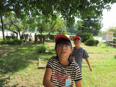 「校長先生、ハチがいて、飛び回らないようにしてます。」 「危ないから近づかないでよ。」
