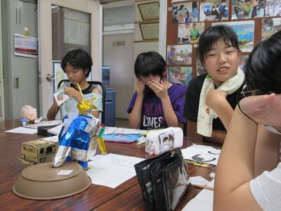 校長室には、6年生のプロジェクト委員が集まりはじめ、楽しそうに活動していますよ。