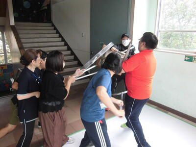 教室内に備え付けている「さすまた」の使い方、不審者との距離感など、専門的に教えていただきます。