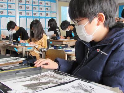 12月19日(木)6年【社会】「雪舟の水墨画の世界」より