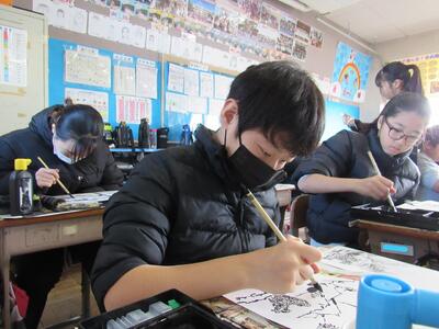 筆と墨を使って描く体験は、日本文化の継承者である6年生にとって、とても価値がありますね。