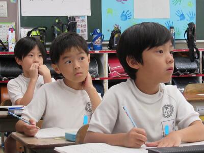 今日は、教育実習生が実習でのまとめの授業に取り組んでいるんです。