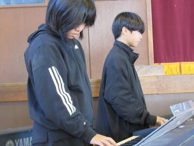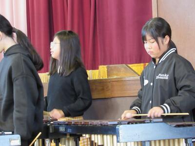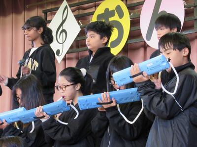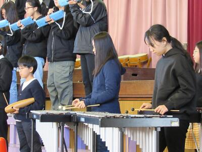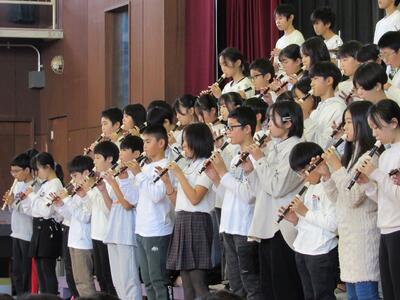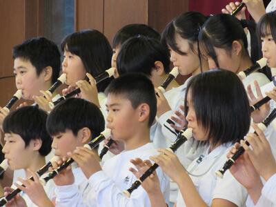 今日は、6年生2クラスで力を合わせての演奏ですよ。