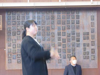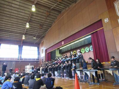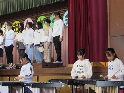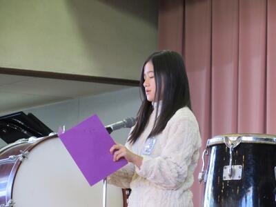 牛島小の6年生として臨んだ最後の音楽会への思いを話しています。