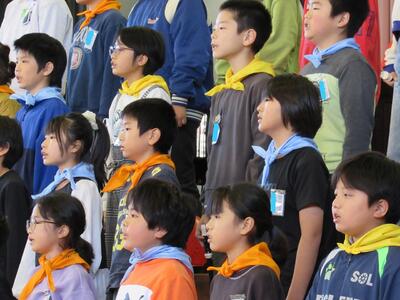 4年生の1曲目は、合唱「世界を旅する音楽室」です。
