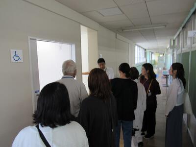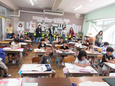 委員の皆さんによる、授業中の子供たちや職員、校舎内などの環境を視察です。