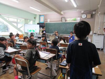 学校運営協議会の委員さんたちと各教室へ行くと、活発な子供たちが待っています。